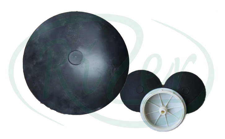 薄膜由進(jìn)口橡膠原料EPDM/硅膠材料制成。橡膠薄膜上有微孔,薄膜表面小工字形的細(xì)孔通過螺旋向外開孔排列,不僅可以將曝氣器排出的氣泡直徑保持在一定范圍內(nèi),還可以相對降低曝氣器的阻力。在整個(gè)服務(wù)范圍內(nèi),確保滿足充氧要求和池內(nèi)布?xì)饩鶆蛐砸蟆O鹉z薄膜的中間區(qū)域?yàn)榉情_口區(qū)域,特別設(shè)計(jì)為自閉式和加厚結(jié)構(gòu)。當(dāng)曝氣停止時(shí),在水壓的作用下密封和關(guān)閉通風(fēng)孔,有效防止污水回流和磨損。